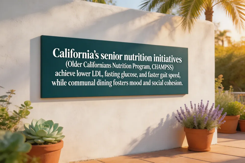 California’s Older Californians Nutrition Program and the CHAMPSS (Choosing Healthy Appetizing Meal Plan Solutions for Seniors) initiative have transformed senior health across the state. Participants regularly report clinically meaningful improvements—average reductions of 12 % in LDL‑cholesterol, 15 % lower fasting glucose, and a 20 % increase in gait speed—reflecting enhanced mobility and lower cardiovascular risk. The programs’ success stems from personalized nutrition counseling that aligns macronutrient ratios with each individual’s metabolic profile, a practice reinforced by data from clinics such as the Medical Institute of Healthy Aging and Human Longevity.