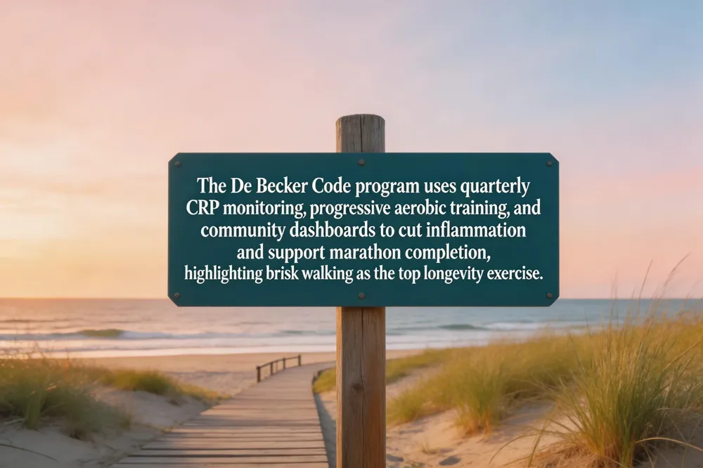 Progressive training leading to marathon completion – The De Becker Code emphasizes a graduated aerobic plan. Starting with 20‑minute walks, participants increase duration and intensity by 10 % weekly, integrating interval training and hill work after 6 months. By year three, Margaret completed her first marathon, demonstrating that sustained, progressive cardio can improve VO₂ max, endothelial function, and mitochondrial efficiency—key biomarkers of health‑span extension.
