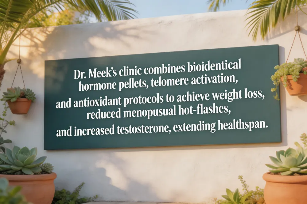 Telomere activation and antioxidant protocols Dr. Meek incorporates telomerase‑activating compounds (e.g., TA‑65) and targeted antioxidant regimens (vitamin D, coenzyme Q10, omega‑3s) based on each patient’s telomere length and oxidative‑stress biomarkers. These interventions aim to decelerate cellular aging and protect mitochondrial function.