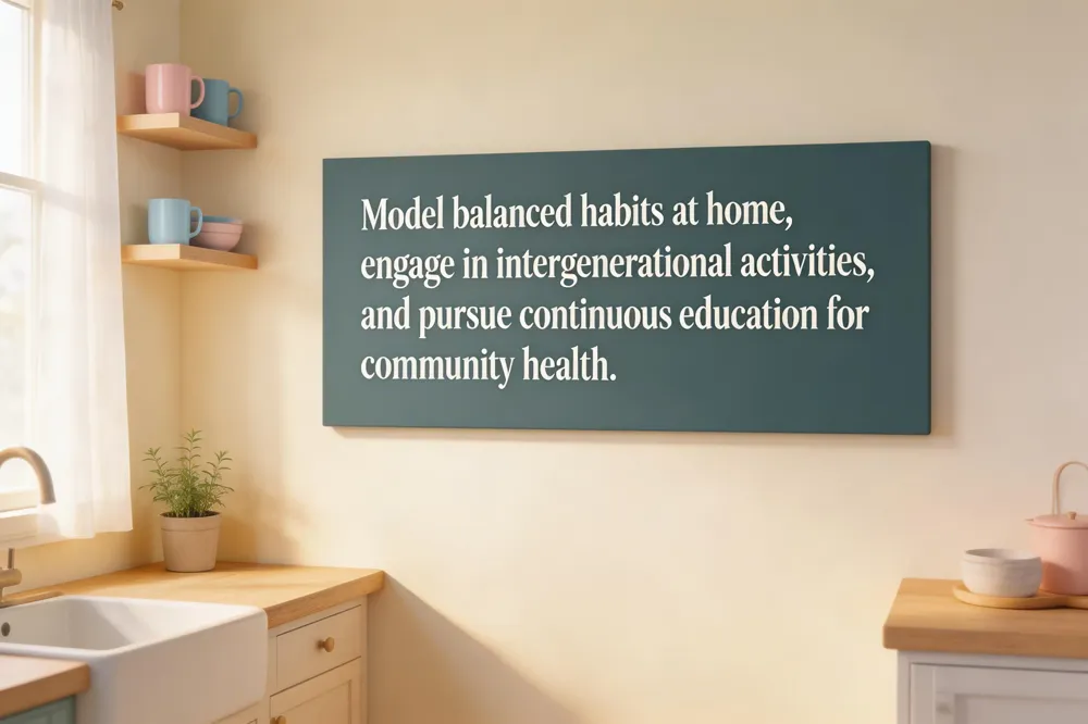 Intergenerational health habits start at home, where parents model balanced meals, regular movement and sufficient sleep for children. Shared family meals rich in fruits, vegetables, whole grains and lean protein reinforce lifelong dietary patterns, while weekend walks or sports create exercise routines that persist into adulthood. Education and skill development extend beyond school; adults learning new skills and children doing project‑based learning both stimulate neuroplasticity and confidence. Community engagement—volunteering, clean‑ups or club participation—strengthens social ties that buffer stress and improve mental health. Healthy environments are built through safe parks, clean air and affordable fresh foods, reducing pollutant exposure.