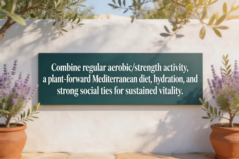 A resilient healthspan emerges when regular aerobic and strength training, a Mediterranean‑style diet rich in antioxidants, 7–9 hours of restorative sleep, and evidence‑based stress‑reduction (mindfulness, yoga) are combined. Proactive care—annual labs, age‑appropriate screenings, and personalized risk modeling—detects disease early. Strong social networks and a sense of purpose amplify longevity, while age‑specific habit adjustments preserve muscle, bone, and cognitive function across the 30s, 40s, and beyond for everyone.