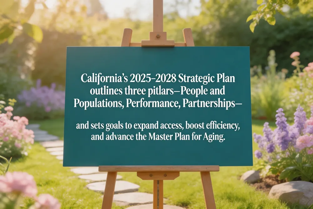 California Department of Aging Strategic Plan (2025‑2028) serves as a statewide roadmap that empowers older adults, people with disabilities, and caregivers to thrive in an age‑ and ability‑inclusive environment. Its mission is to lead a collaborative, future‑focused network that delivers person‑centered, equity‑driven services. The plan is organized around three priority pillars—People and Populations, Performance, and Partnerships—and sets concrete goals such as expanding service access, improving administrative efficiency, and advancing the Master Plan for Aging with diverse stakeholders. Data‑informed decision‑making and performance metrics guide resource allocation, ensuring high‑quality, inclusive care that promotes health, independence, and quality of life.