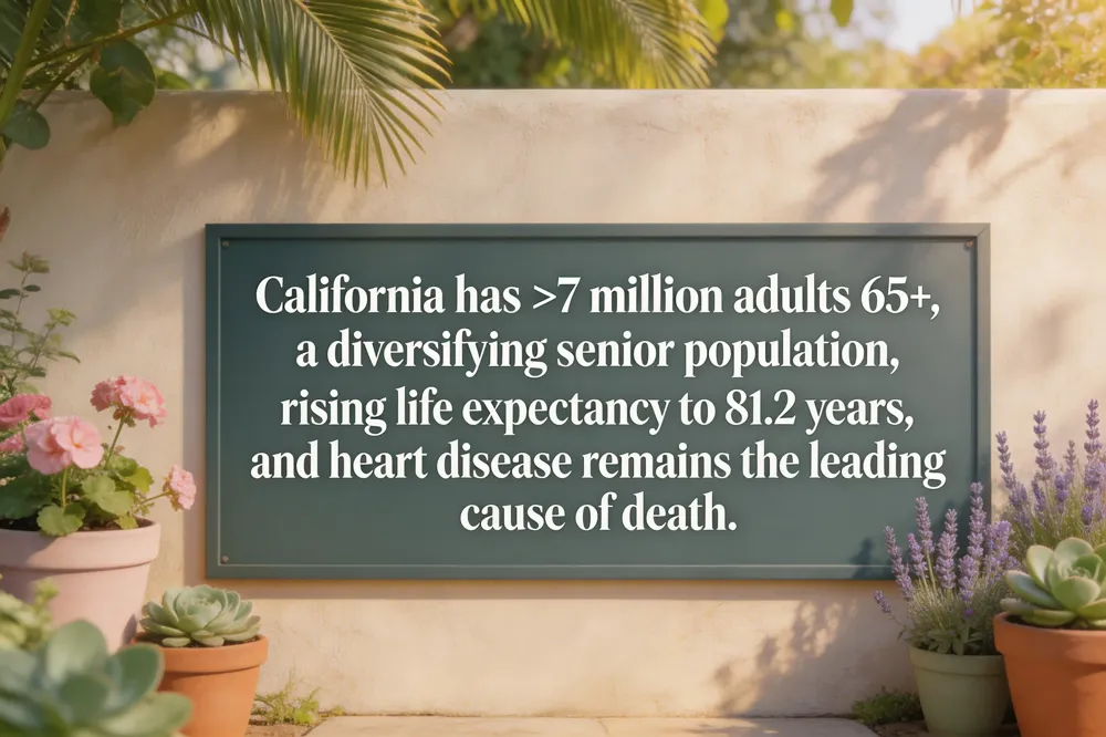 California is home to nearly 4.2 million adults aged 65 and older, representing about 16 % of the state’s population and a projected 25 % by 2030. Life expectancy exceeds the national average, yet disparities persist, with Black and low‑income seniors lagging behind. The state’s Master Plan for Aging (MPA) and related initiatives—such as the universal Long‑Term Care benefit (Initiative 18), HCBS Settings Final Rules (20), removal of the Medi‑Cal asset test (26), and the Age‑Friendly Health System rollout (40)—create a policy infrastructure that prioritizes health‑reimagined, equity, and aging‑in‑place. Proactive health optimization, demonstrated by UC Davis’s Age‑Friendly clinic and the Hundred Health 100‑day action plan, translates these policies into personalized preventive care, early detection, and technology‑enabled monitoring, positioning Californians to extend healthspan while reducing hospitalizations and financial hardship.