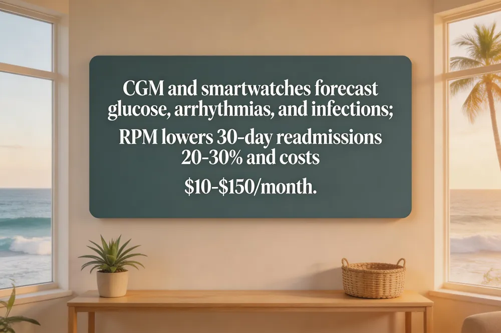 Clinical impact is evident: remote patient monitoring (RPM) has lowered 30‑day readmission rates by 20‑30 % for chronic disease cohorts (JAMA Network Open, 2022) and reduced hospital stays, shortening the “golden hour” for sepsis detection (Roche, 2026). Cost structures reflect this value—basic vitals tracking costs $10‑$30 per month, comprehensive AI‑driven packages $40‑$80, and bundled services with coaching $100‑$150, offset by avoided admissions and ER visits (Proactive health monitoring cost answer).