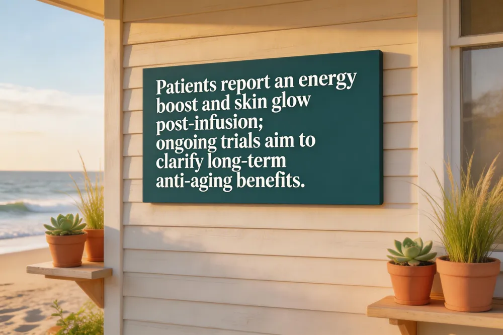 Tailored dosing should be guided by oxidative‑stress profiling (e.g., plasma malondialdehyde, glutathione status) and renal function, with typical regimens ranging from 1 g to 25 g per infusion administered 1–2 times weekly (Medical Institute of Healthy Aging). Functional‑medicine clinics integrate these biomarker‑driven protocols with lifestyle interventions—diet rich in fruits/vegetables, exercise, sleep hygiene—to create a comprehensive health‑span strategy.