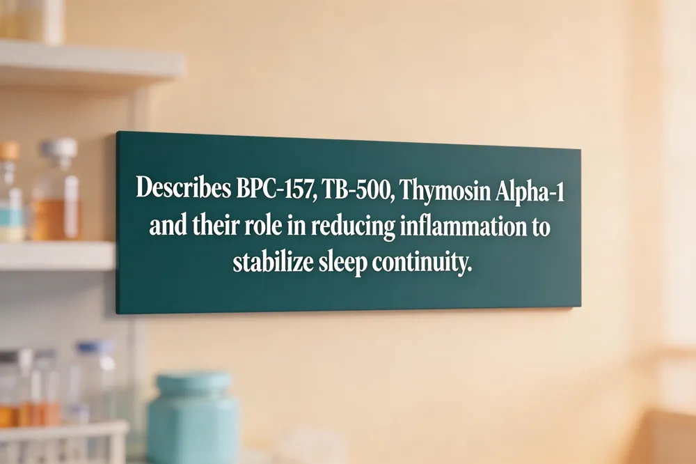 BPC‑157, TB‑500, and Thymosin Alpha‑1 are primarily valued for their regenerative and anti‑inflammatory actions. By repairing gut mucosa, dampening systemic cytokine release, and modulating immune pathways, they help stabilize the gut‑brain axis—a key regulator of nocturnal comfort and sleep continuity. When gastrointestinal irritation or low‑grade inflammation provokes night‑time awakenings, the tissue‑healing properties of BPC‑157 and TB‑500 can reduce these disruptions, while Thymosin Alpha‑1 further lowers inflammatory stress that fragments deep (slow‑wave) sleep.