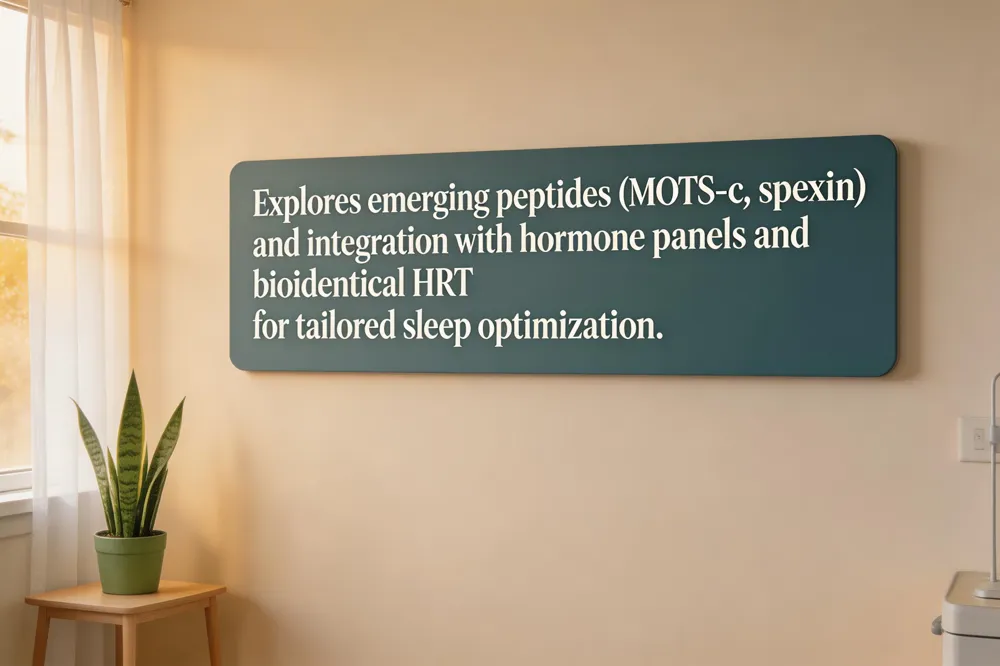 Emerging peptide candidates such as mitochondrial‑derived MOTS‑c and the adipose‑modulating spexin are gaining attention for their ability to boost fatty‑acid oxidation, promote brown‑fat thermogenesis, and suppress adipogenesis, offering a metabolic edge to conventional GH‑releasing peptides. Modern longevity clinics are pairing these molecules with advanced hormone panels that quantify GH, IGF‑1, cortisol, melatonin, sex steroids and emerging biomarkers like adipokines and mitochondrial peptides, enabling real‑time tracking of endocrine and metabolic shifts. Integrating peptide regimens with bioidentical hormone replacement therapy (HRT) creates synergistic protocols: HRT restores declining estrogen, progesterone, or testosterone, while peptides such as CJC‑1295, Ipamorelin or spexin fine‑tune GH pulsatility, cortisol rhythm, and adipose health. This data‑driven, combination approach promises more precise sleep optimization, tissue repair, and health‑span extension.