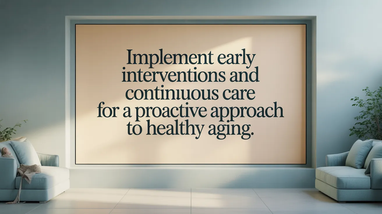 Healthy aging necessitates a multifaceted approach that synthesizes personalized medicine, lifestyle modification, and environmental improvements. Tailored interventions utilizing genetic testing and biomarker assessments promote early detection and individualized care, complementing lifestyle practices such as plant-based Mediterranean diets, consistent physical activity, and social engagement observed in longevity regions like California's Loma Linda.