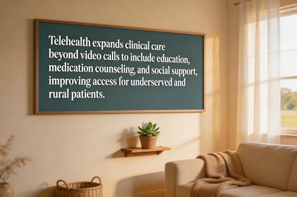 [Telehealth delivers health‑care services via digital communication tools]—video calls, mobile apps, web portals, and secure messaging—allowing patients to receive care remotely. While telemedicine is the clinical core (diagnosis, treatment, monitoring) delivered between a patient and a licensed provider, telehealth encompasses a broader suite of services, including health education, medication counseling, and social‑support activities. In practice, a telehealth visit begins with scheduling through a patient portal (e.g., MyCigna or the Medical Institute of Healthy Aging’s platform), confirming the modality (video or phone), and testing audio‑video equipment. On the day of the appointment, the patient joins via a secure link or dial‑in number in a quiet, private space, ready with medication lists and questions.